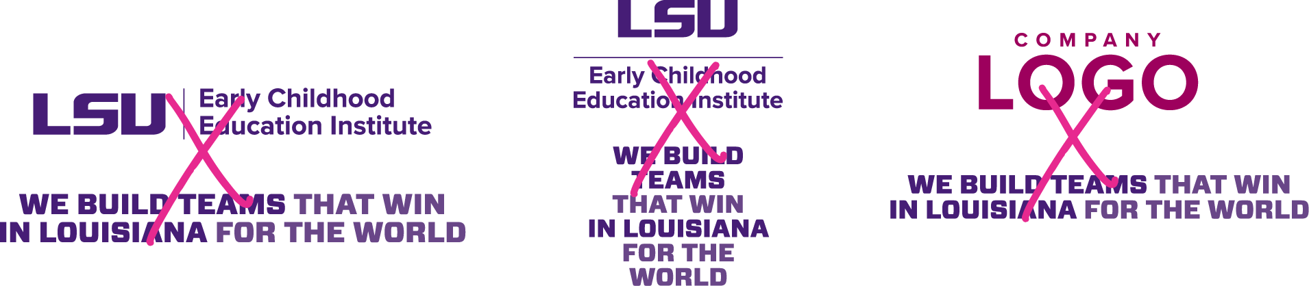 Signatures or other logos may not appear in a lock up with the logo or in place of the LSU logo.